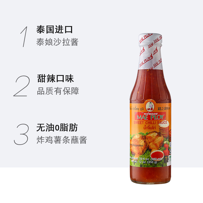 泰国进口泰娘0脂肪泰式 低脂拌面春卷皮手抓饼辣椒酱 甜辣酱350g
