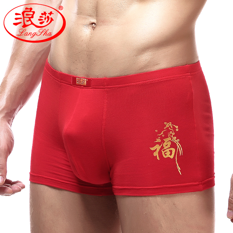 情侣莫代尔内裤 浪莎男士 女士红色三角内裤 平角裤 本命年大红色内裤
