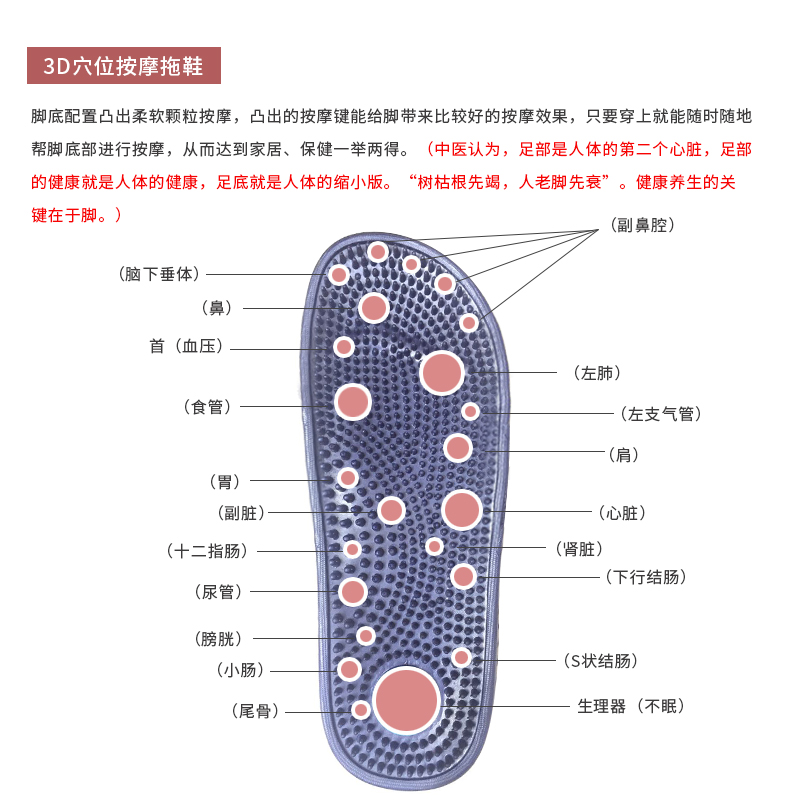 浴室内防滑家用夏季 穴位足底按摩凉拖鞋 男拖 女脚底足疗鞋 按摩拖鞋