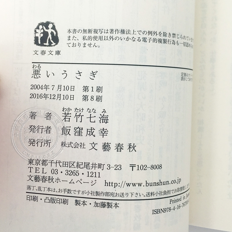 文库 深图日文 若竹七海 现货 文藝春秋 正版 恶意 进口 悪いうさぎ 书 兔子 原版 日本推理小说