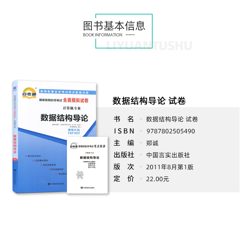 郑诚 全新正版 自考通数据结构导论 力源图书 主编 2142 02142 社 自学考试全真模拟试卷 3177 03177 中国言实出版 赠考点串讲