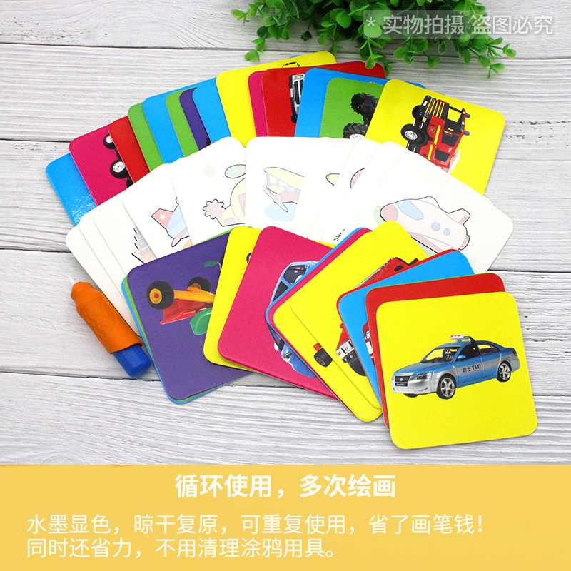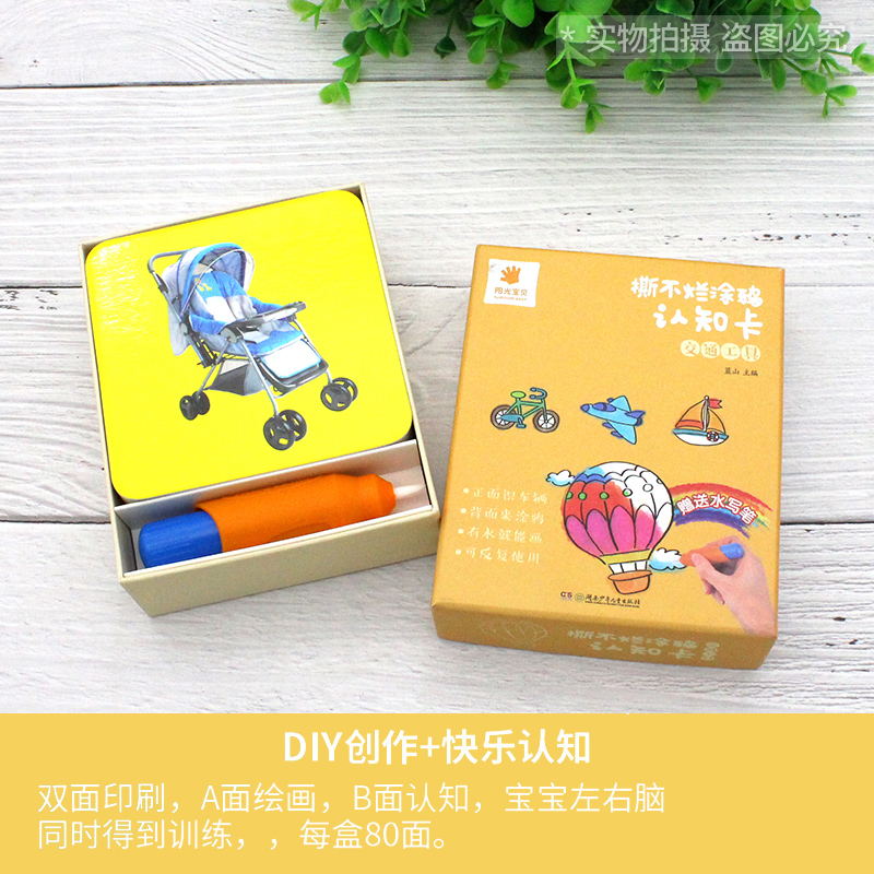 盒装 3岁幼儿绘本益智书籍3 阳光宝贝 婴儿启蒙认知卡片0 6岁宝宝涂色填色本画画书简笔画大全 宝宝撕不烂涂鸦认知卡·交通工具