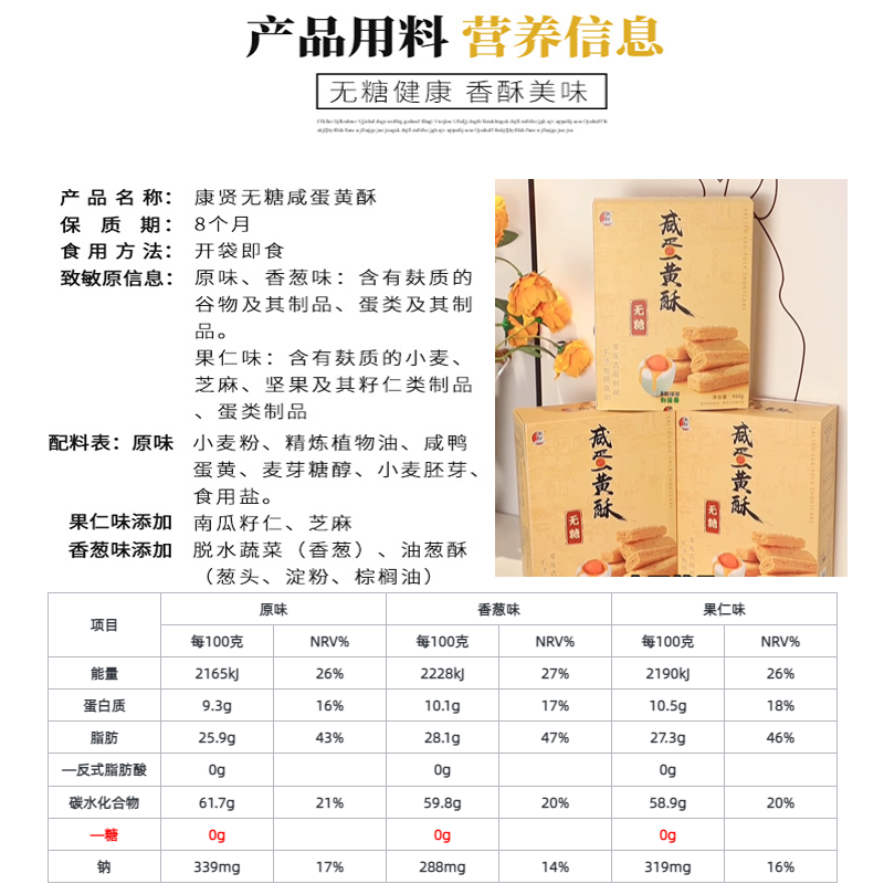上海康贤无糖食品咸蛋黄酥千层酥零食休闲零食送人长辈办公室盒装