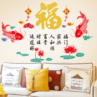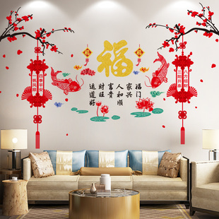 新年客厅墙画餐厅背景墙装 饰3d立体墙贴画贴纸壁纸中国风自粘墙纸