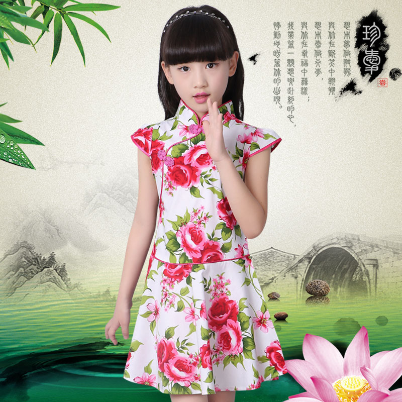 春夏中大童女童纯棉旗袍裙弹力棉布裙中国风古筝表演2 新款