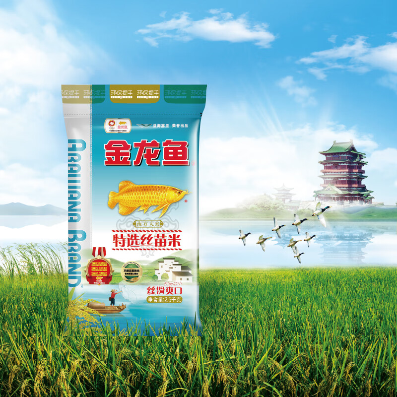 金龙鱼特选丝苗米2.5kg 丝滑爽口南方长粒米香米团购 2袋大米5斤装