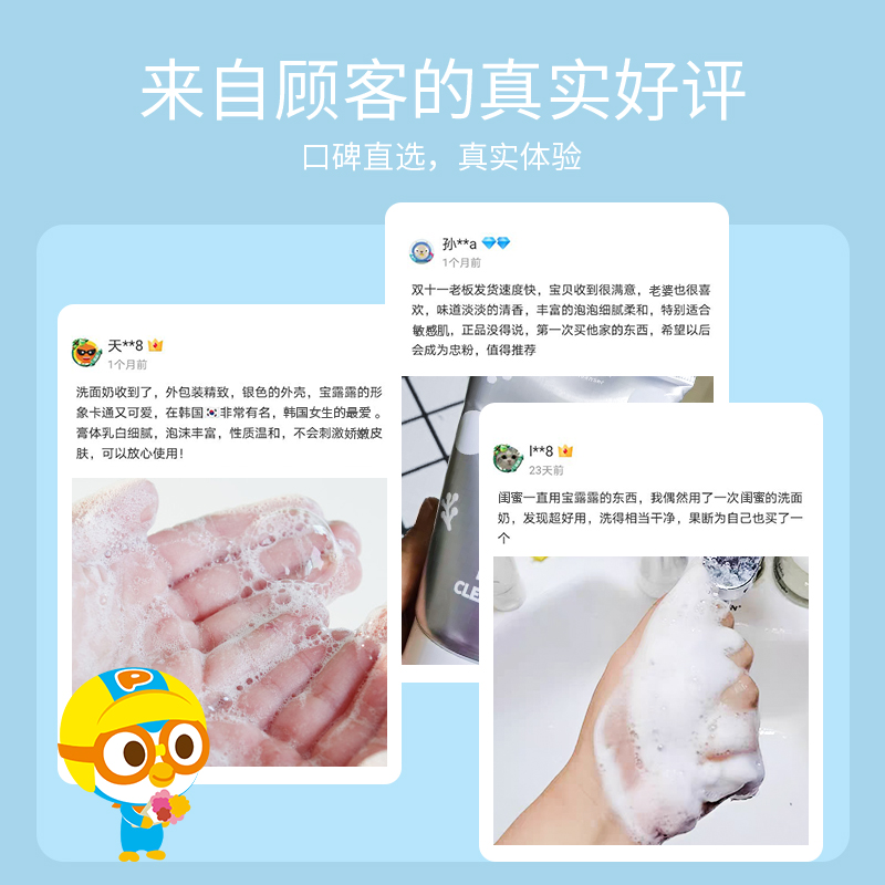 pororo啵乐乐洗面奶泡沫洁面乳男女士护肤清洁洗脸正品 韩国进口