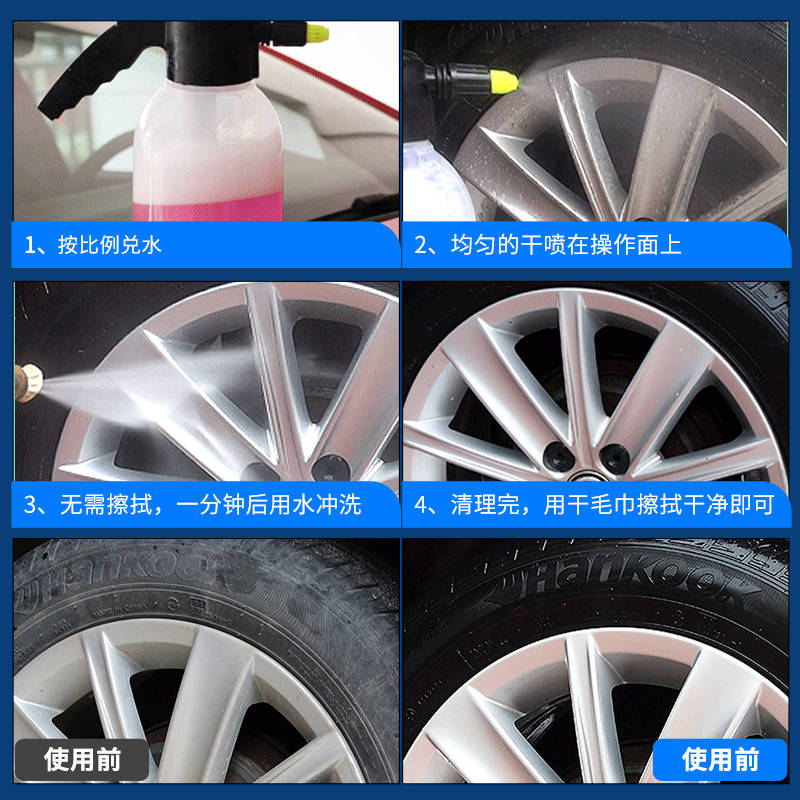 多功能自洁素免擦拭洗车液粉轮胎轮毂铁粉虫胶清洗剂全效强力去污