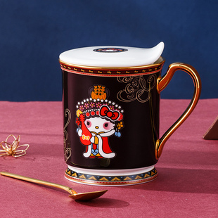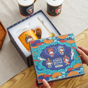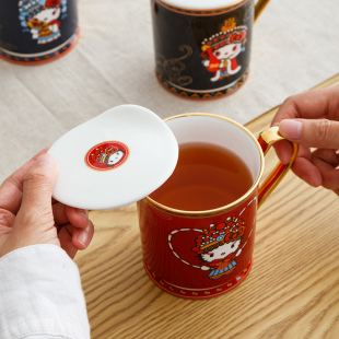 摩登主妇hellokitty杯子高脚马克杯带勺家用水杯早餐杯陶瓷咖啡杯