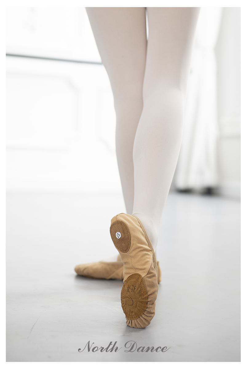 免系带舞蹈鞋 北舞两底 带皮头 软底鞋 儿童女软底练功芭蕾舞 猫爪