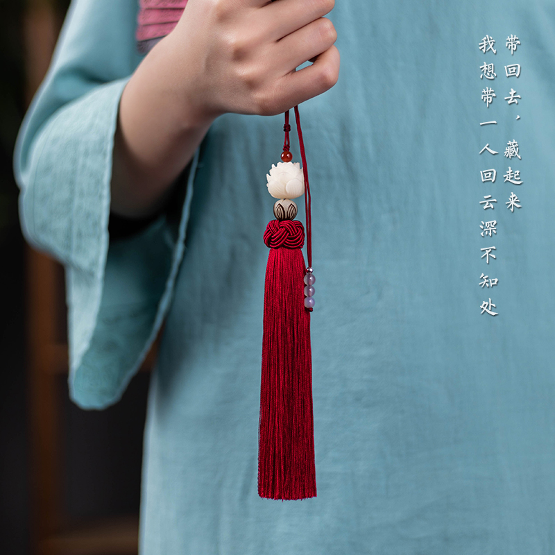 朴房菩提莲花汽车挂件笛子流苏吊坠男古风穗子长款 包包汉服配饰女