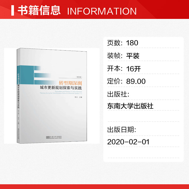 图书籍 社 编 新 专业科技 水利 李江 建筑 东南大学出版 转型期深圳城市更新规划探索与实践 新华书店正版 第2版
