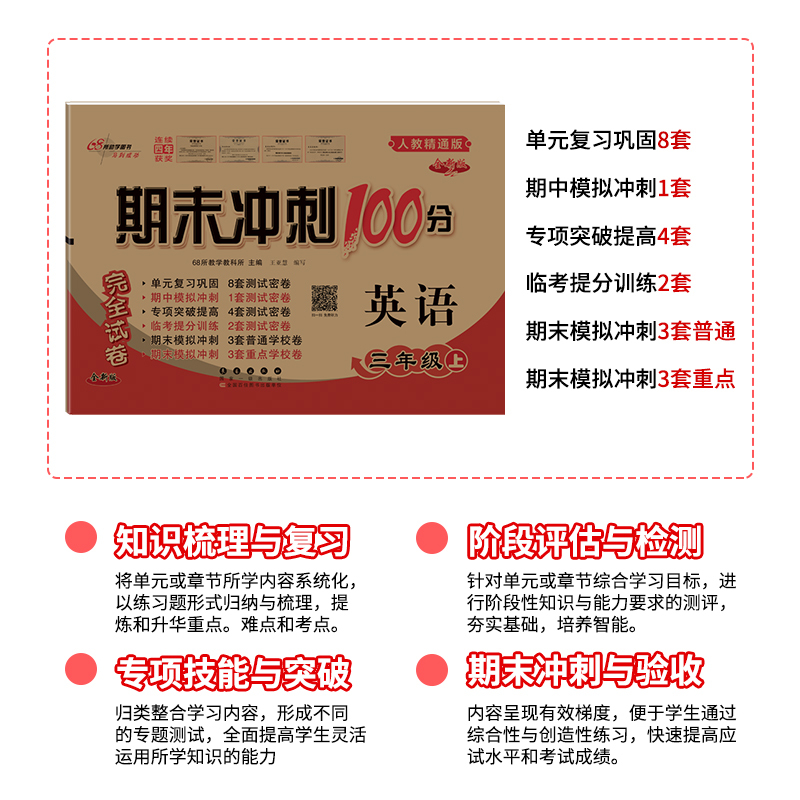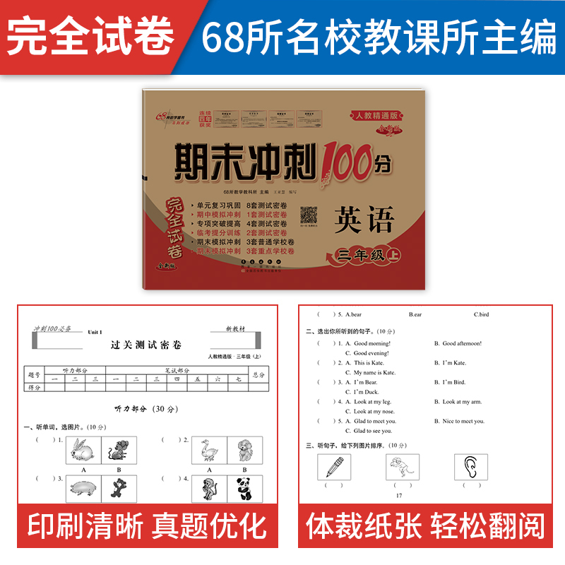 专项同步测试卷子附英语听力68所名校 三年级起点3年级同步训练练习册单元 2025新版 期末冲刺100分小学三年级英语试卷上册人教精通版