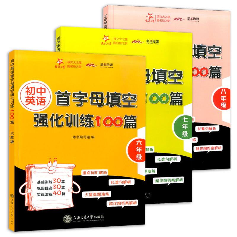交大之星 初中英语基础训练首字母填空 初中英语首字母填空强化训练100篇 678年级 巩固提高实战演练强化训练 六七八年级 全套3本
