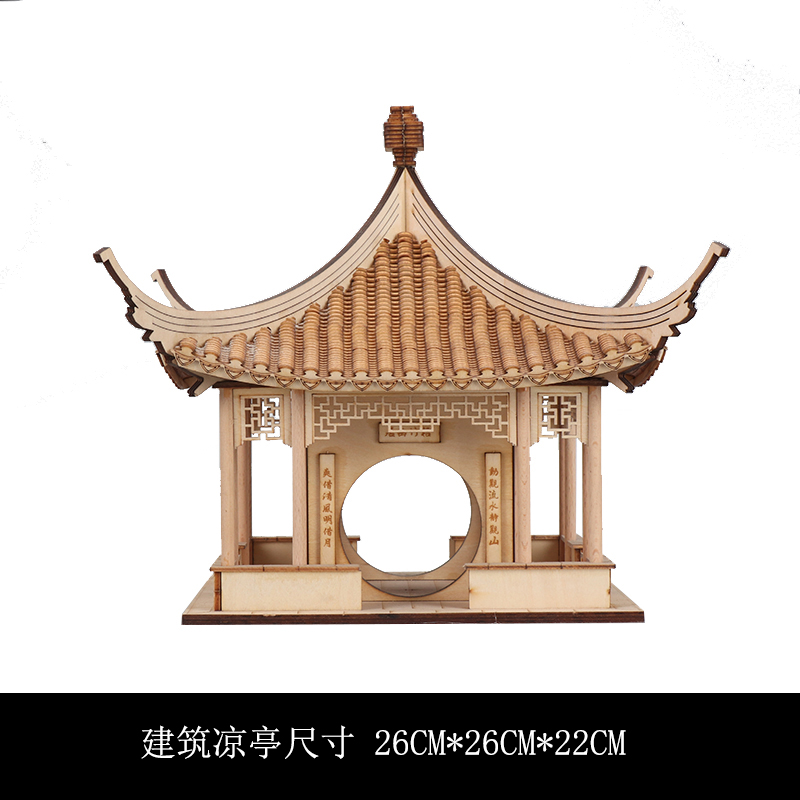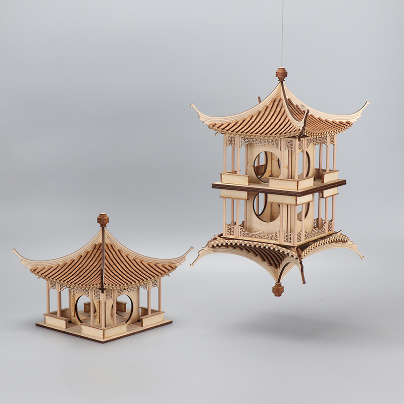 现代新中式 饰品摆件 创意木质凉亭建筑屋檐客厅玄关家居禅意软装