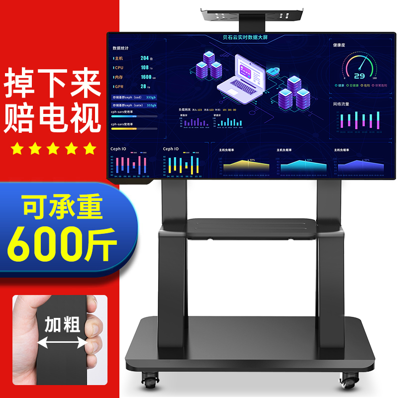 98寸会议教育一体机落地式 可移动电视机支架55 带轮推车