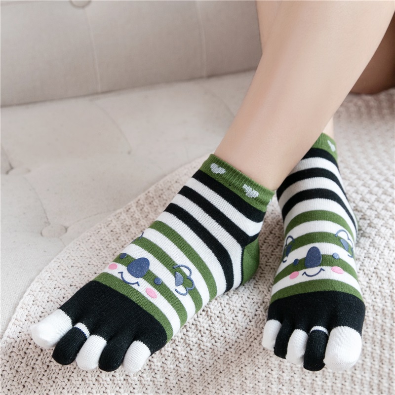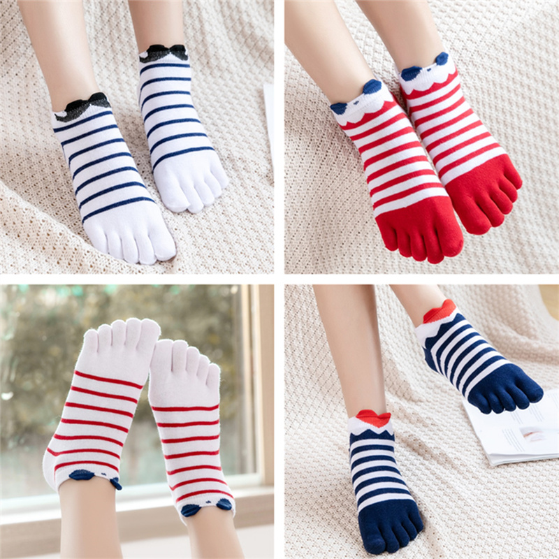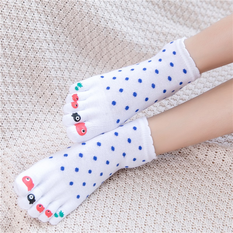 蓝姿欣4双装 女士五趾袜分趾短筒可爱卡通女袜 五指袜女精梳棉四季