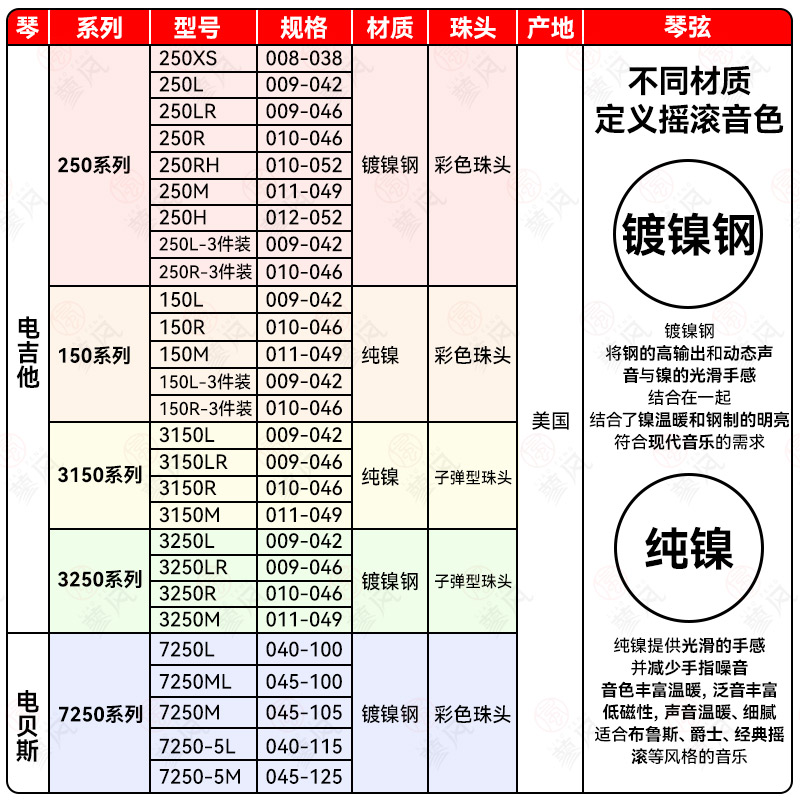 3250 电吉他弦 子弹头系列琴弦 芬达Fender 009 350 008 010 250