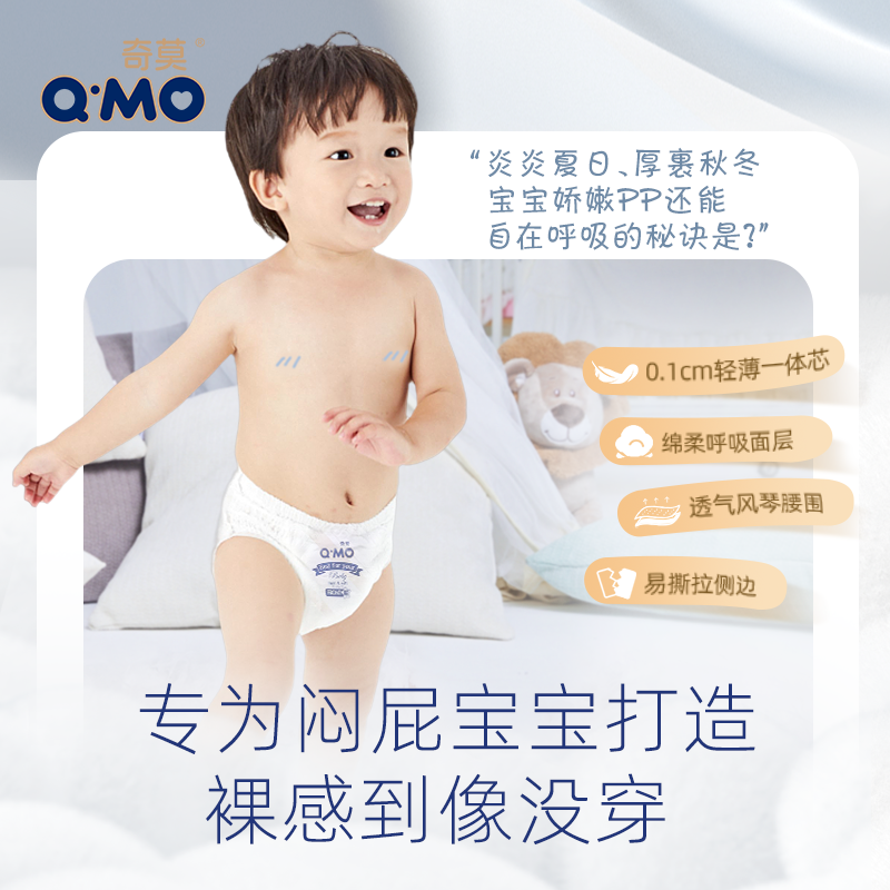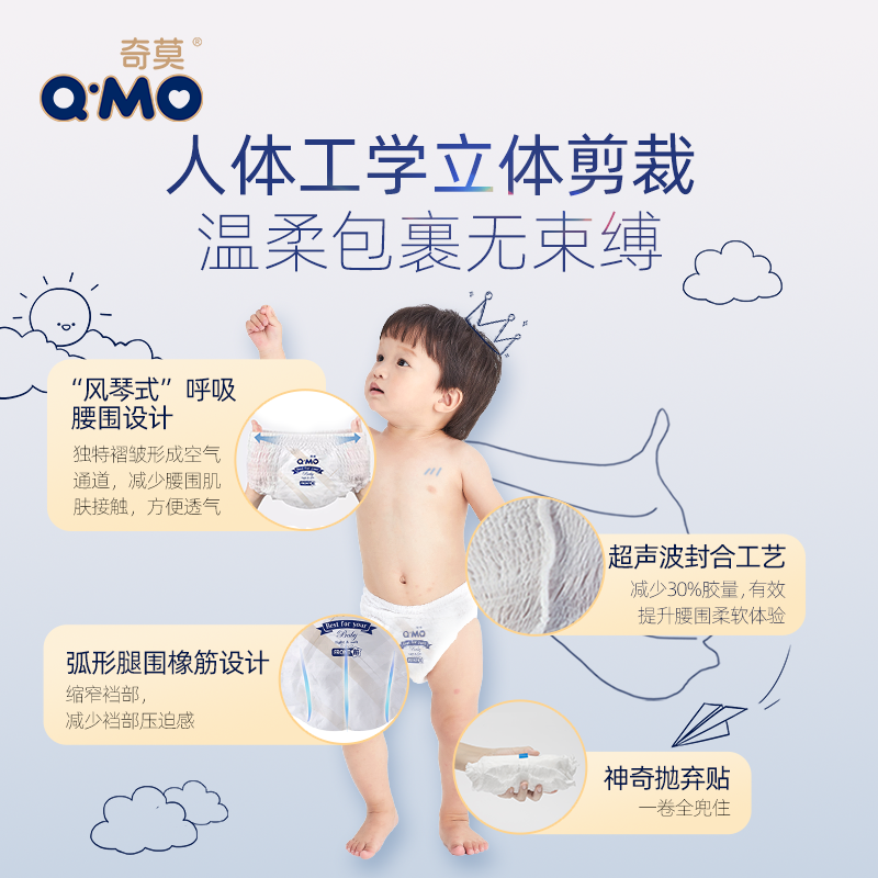 52片宝宝学步尿不湿轻薄透气柔软防漏 XXL码 奇莫轻柔拉拉裤 弹力裤