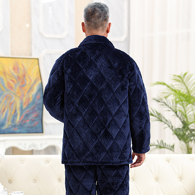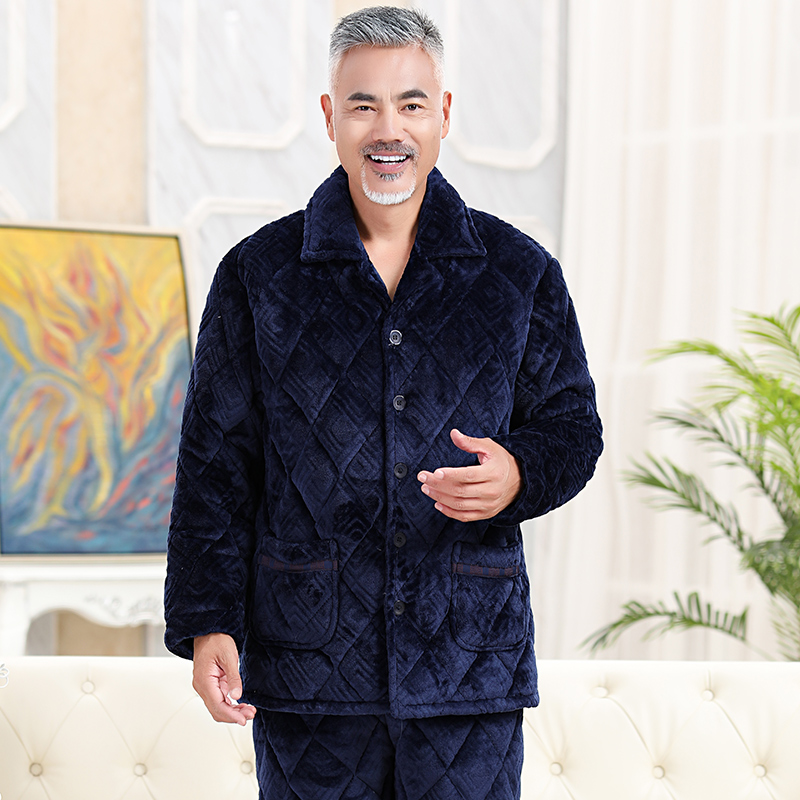 冬季 加厚加绒爸爸法兰绒三层夹棉老人家居服 中老年珊瑚绒睡衣男士