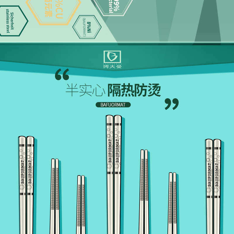 摩登主妇抗菌合金筷家用高档2025新款 一人一筷防滑防霉耐高温筷子