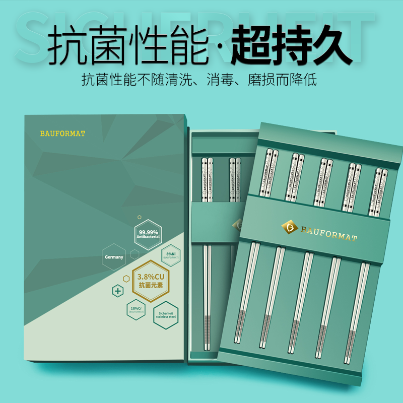 双枪316L不锈钢筷子家用高档抗菌防霉家庭专人专用轻奢高级感防滑