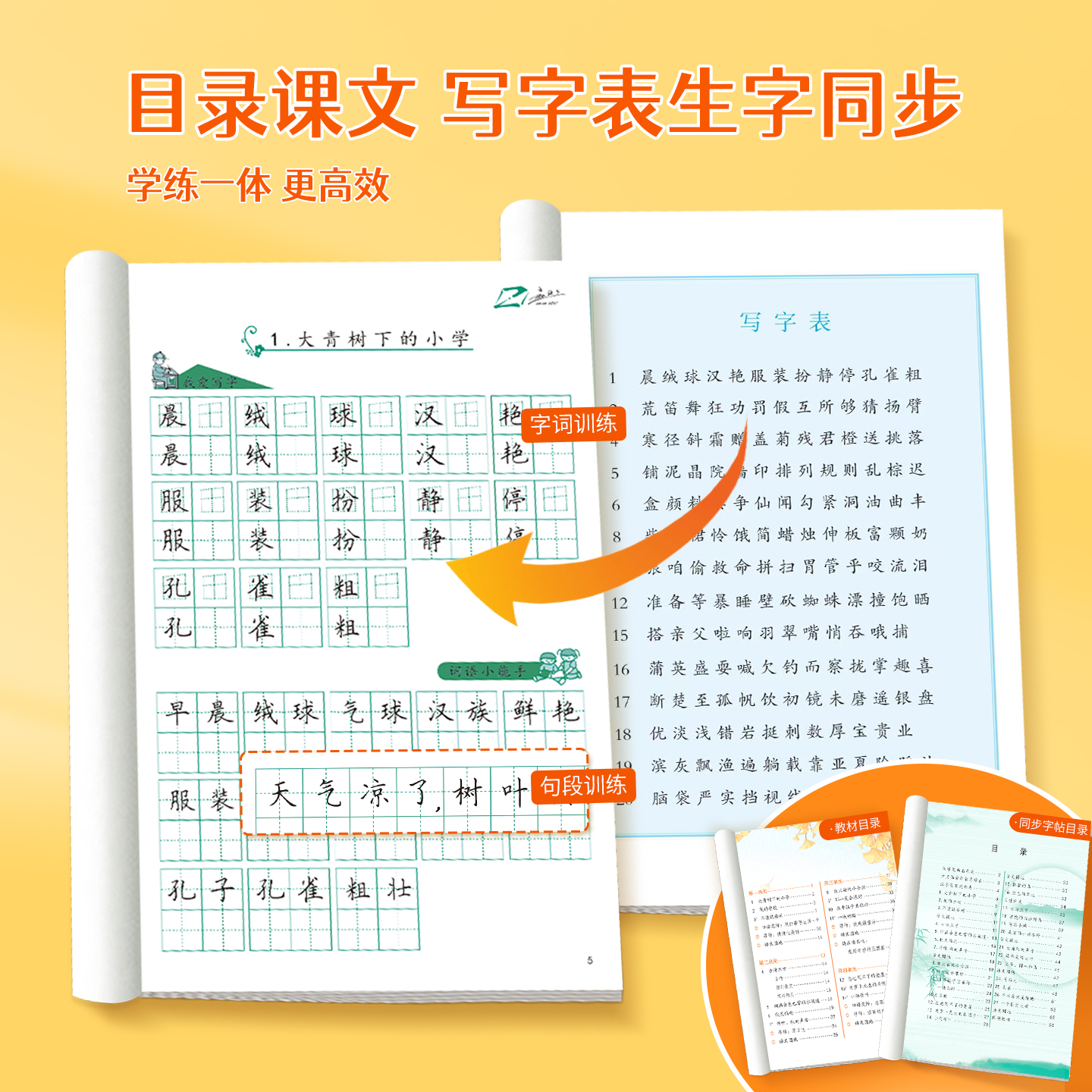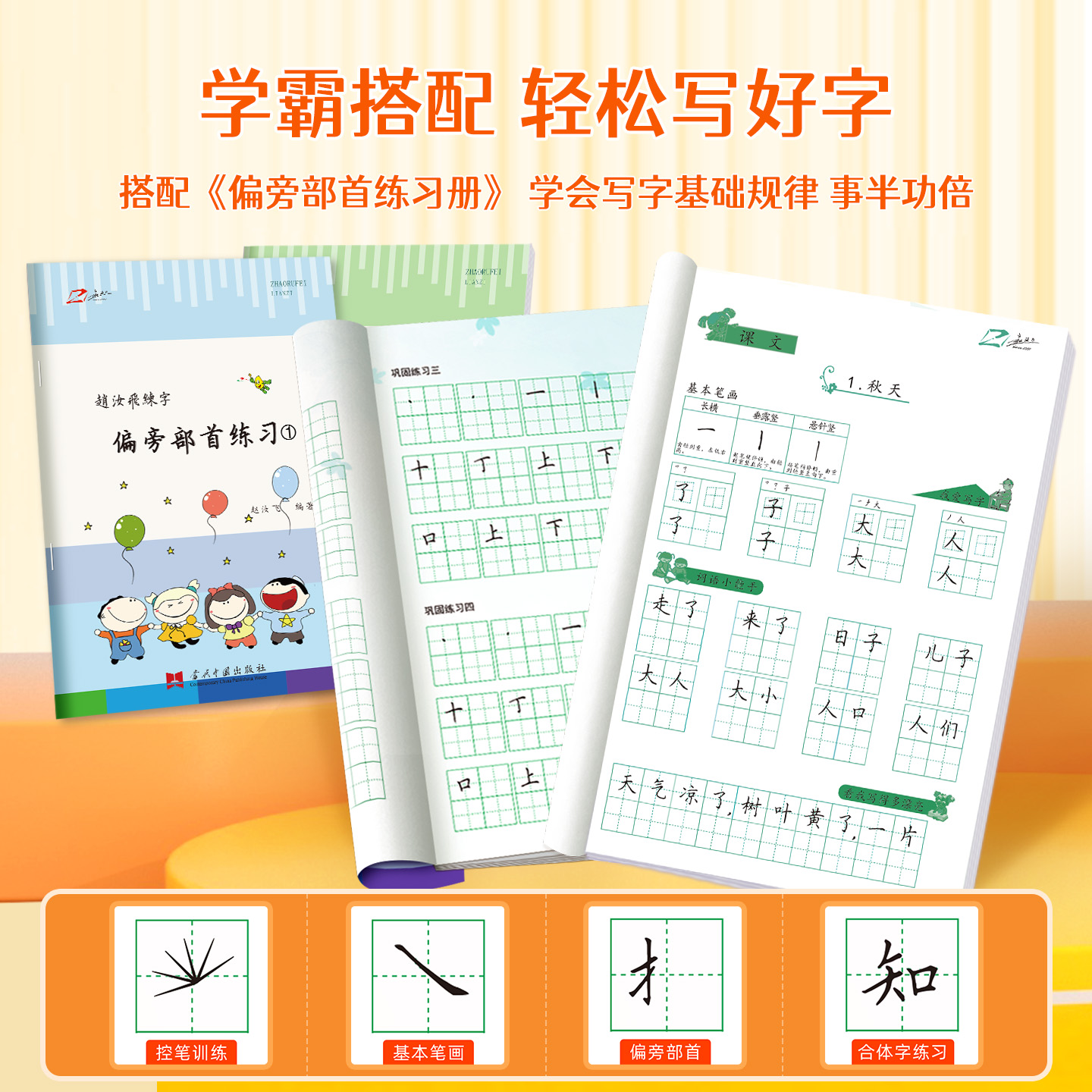 握笔方法写字偏旁部首拼音小学课本同步练习册赵汝飞练字梯形格硬笔正楷 小学生同步一至六年级字帖部编版 小学0基础套餐