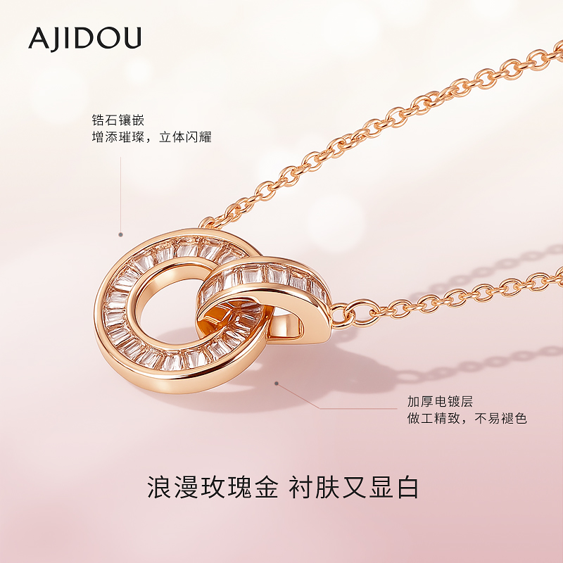 周大生18K金项链O字链玫瑰彩金颈链配吊坠锁骨素链生日礼物送女友