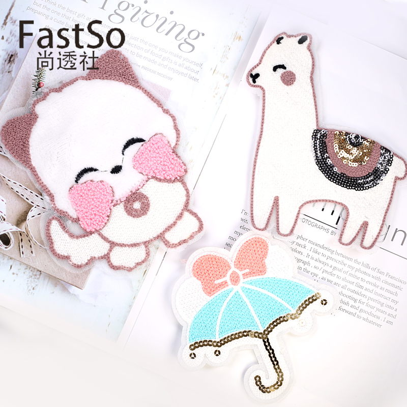 可爱柔软毛线布贴时尚 儿童补丁贴花卡通动物大号破洞贴布绣可爱