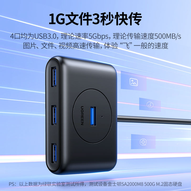 绿联usb拓展坞插头多口一分二集分线器typec延长线hub3.0外接u盘带供电转接头转换器笔记本电脑多接口扩展器