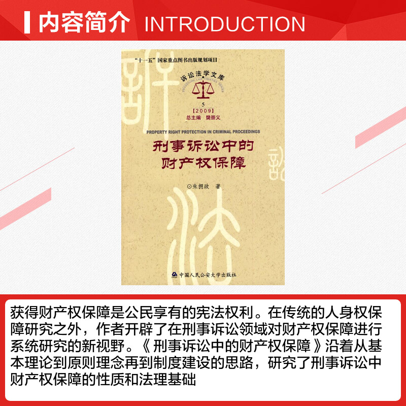 朱拥政 著 中国人民公安大学出版 财产权保障 图书籍 诉讼法学文库2009 新华书店正版 刑事诉讼中 法学理论社科