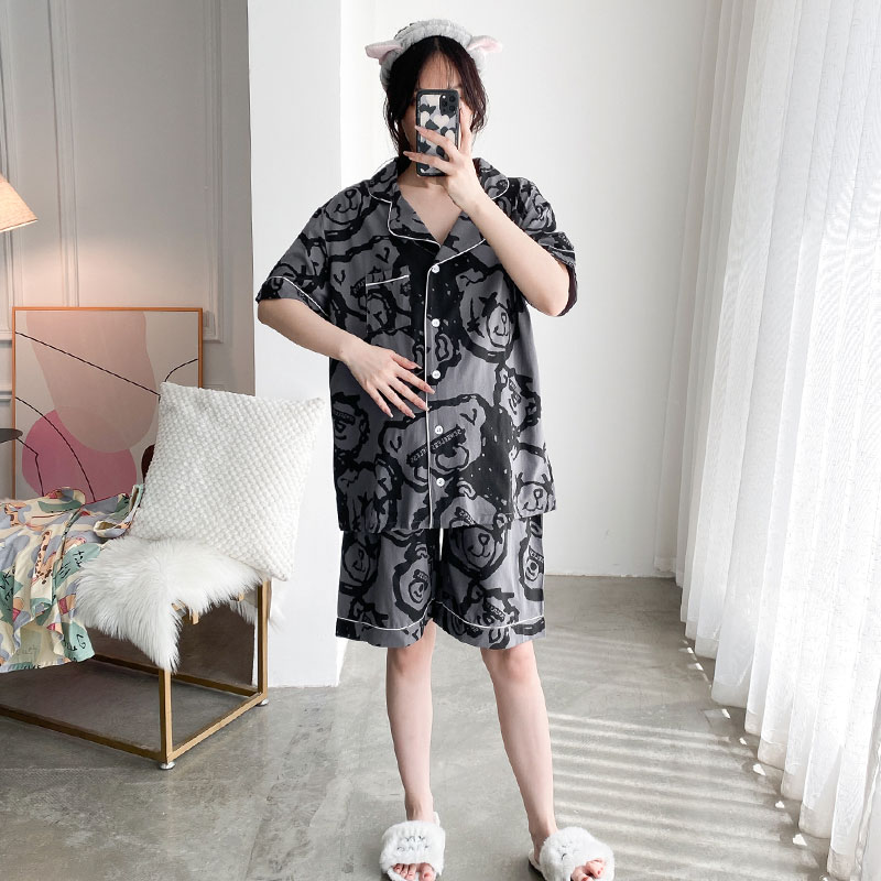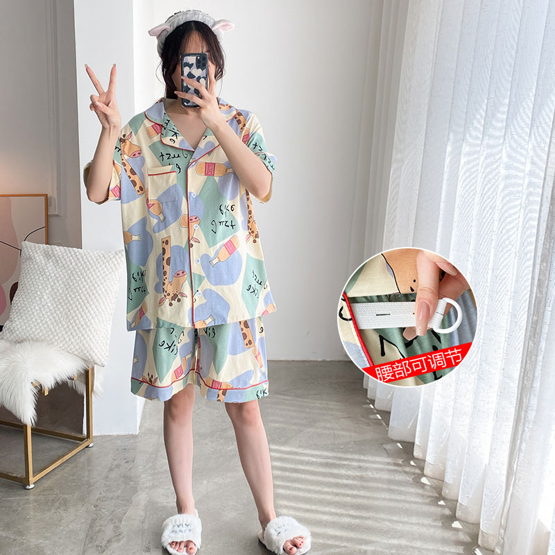 夏季 外穿女款 薄款 宽松休闲大码 家居服 透气套装 芬腾睡衣女纯棉短袖