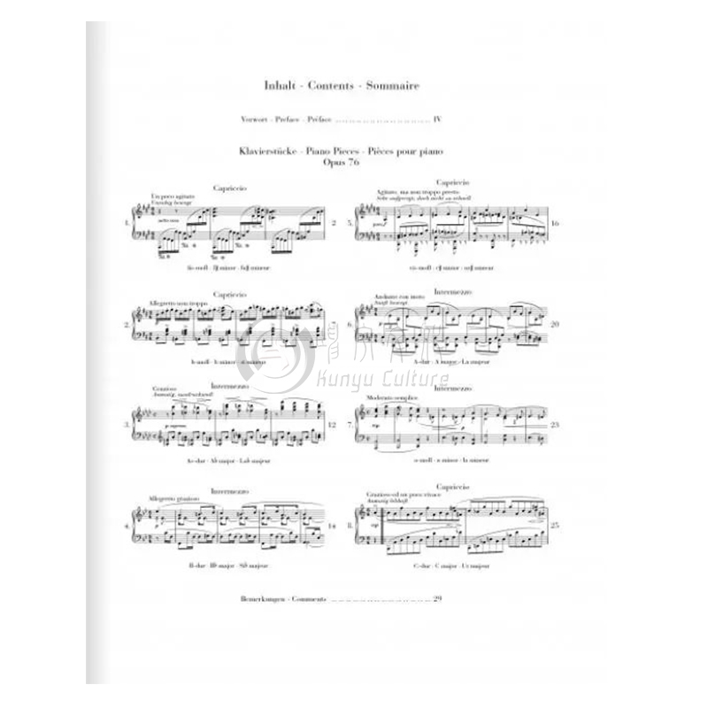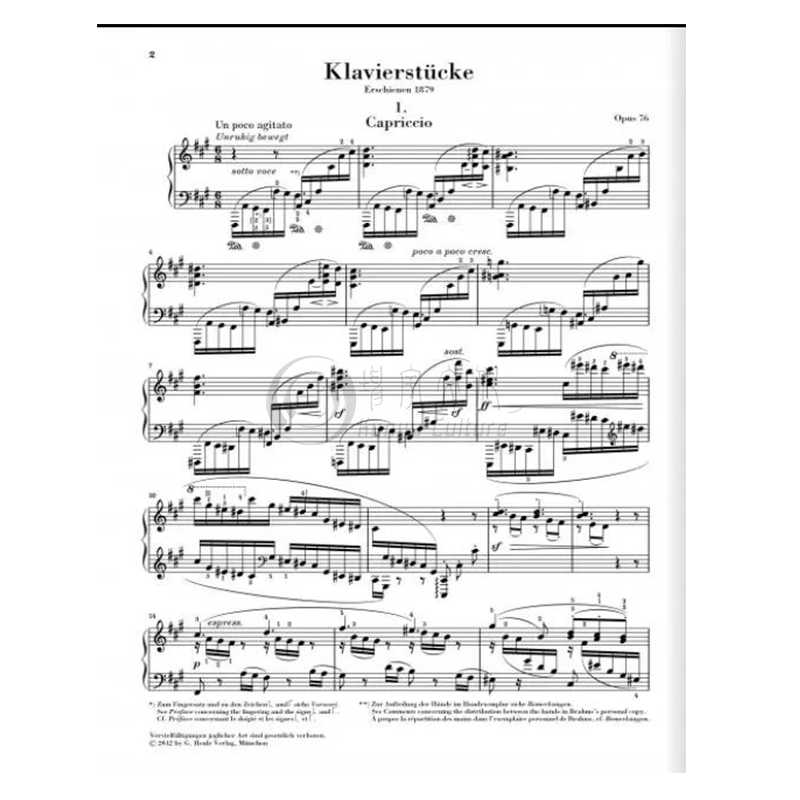 乐谱书 钢琴作品集 德国Henle 勃拉姆斯 Johannes Pieces 钢琴独奏 Piano op76 HN1184 带指法 Brahms 亨乐原版