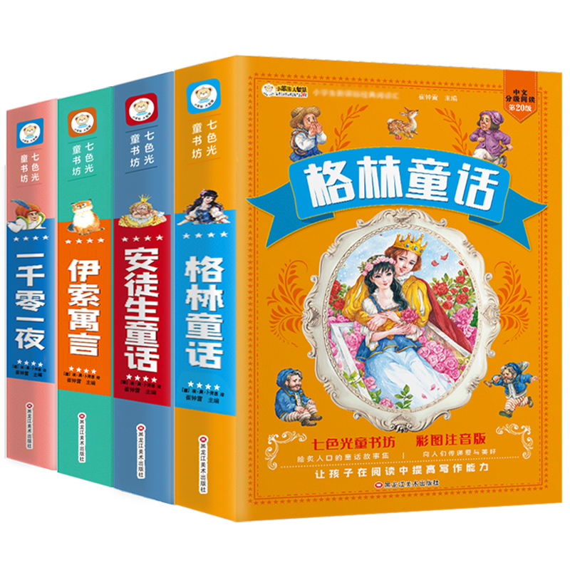 睡前故事书儿童幼儿园书籍小学生一二三年级课外阅读精选必读绘本 安徒生童话格林童话一千零一夜伊索寓言彩图注音正版 全套四册