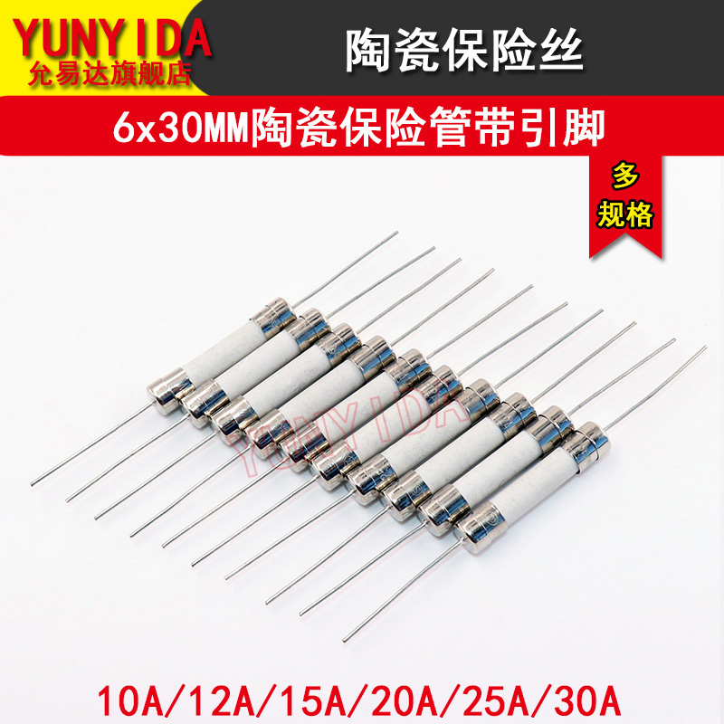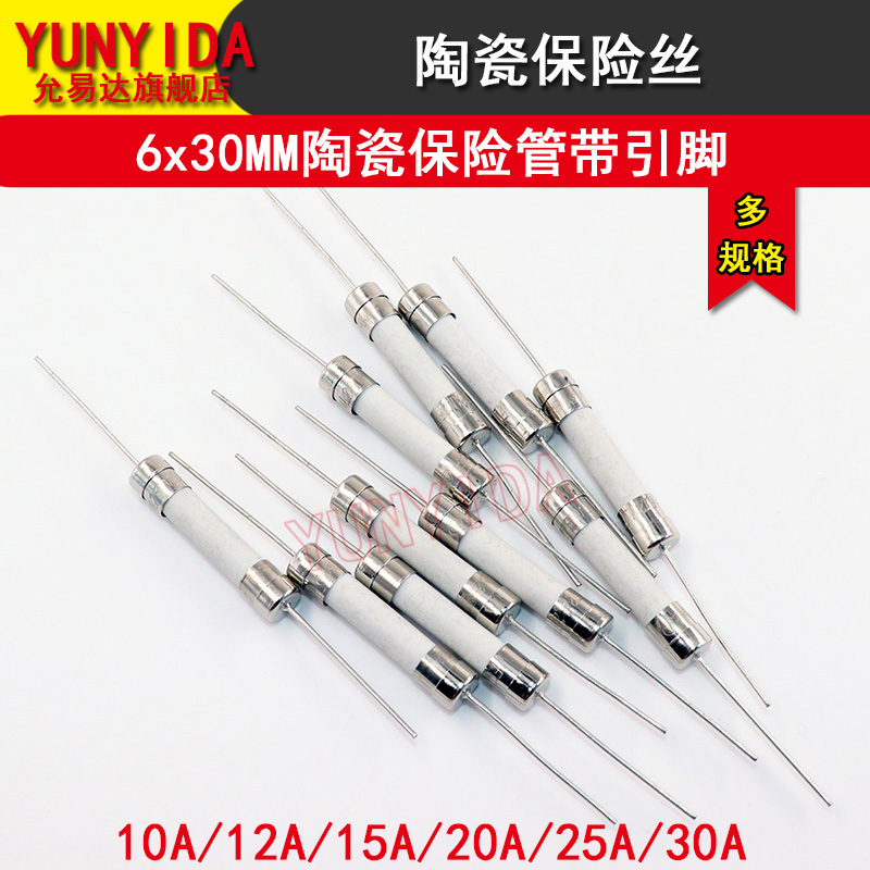 15A 20A 25A 10只 12A 30A 250V快断 30MM陶瓷保险管带引脚10A