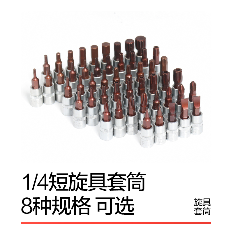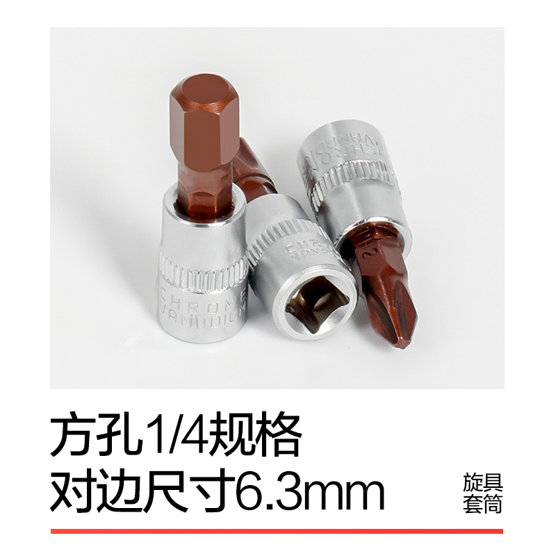4小飞旋具套筒压批6.3mm六角五角花型梅花一字十字米字批头工具