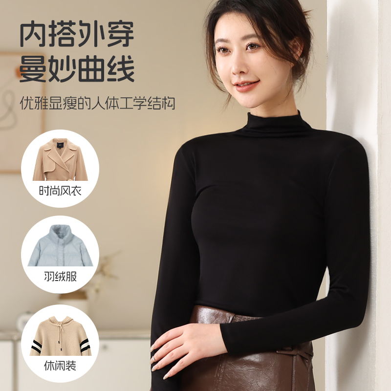 纯色百搭可外穿半高领上衣 打底衫 健丹鸟莫代尔保暖内衣女薄款 修身