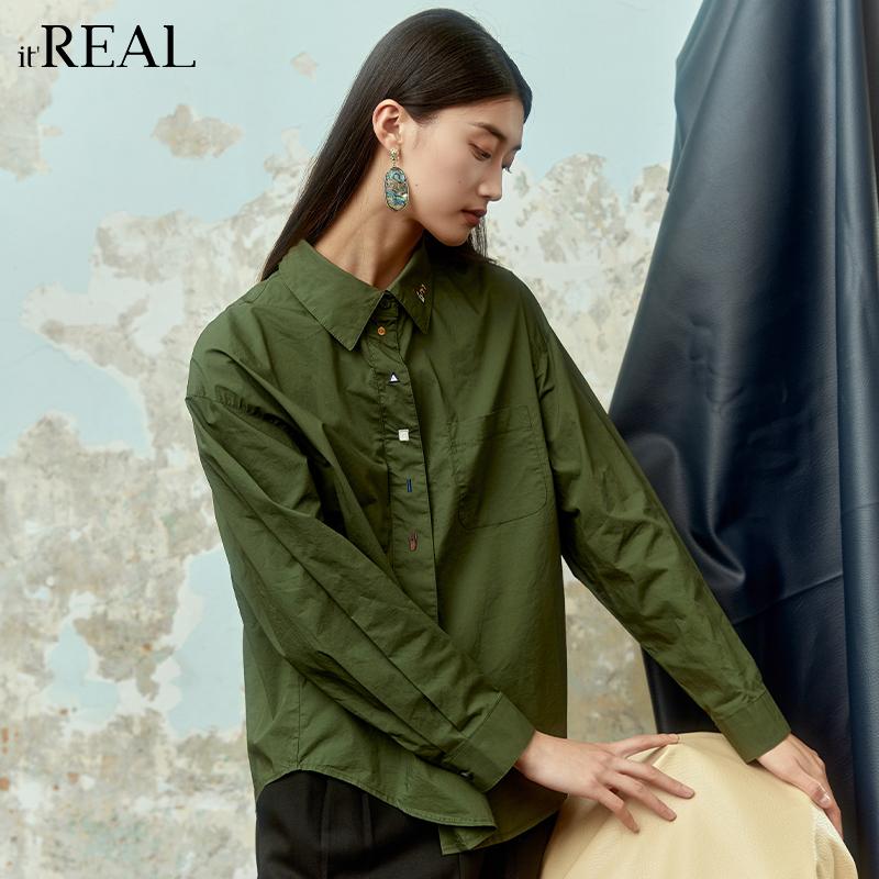 real瑞尔法式 内搭长袖 学院风衬衫 新款 简约衬衣女 上衣秋季