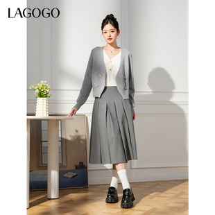针织衫 条纹短袖 长袖 开衫 毛衣外套 RARN2025秋装 两件套圆领修身 新款