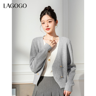 纯棉春秋外套纯色百搭圆领毛衣针织衫 宽松针织开衫 潮 女装 2025新款