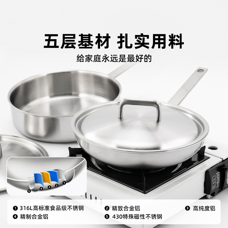 莱德斯316L食品级不锈钢锅加厚少油烟家用炒锅无涂层多功能灶通用