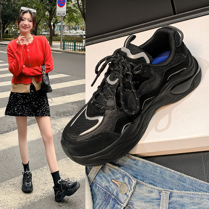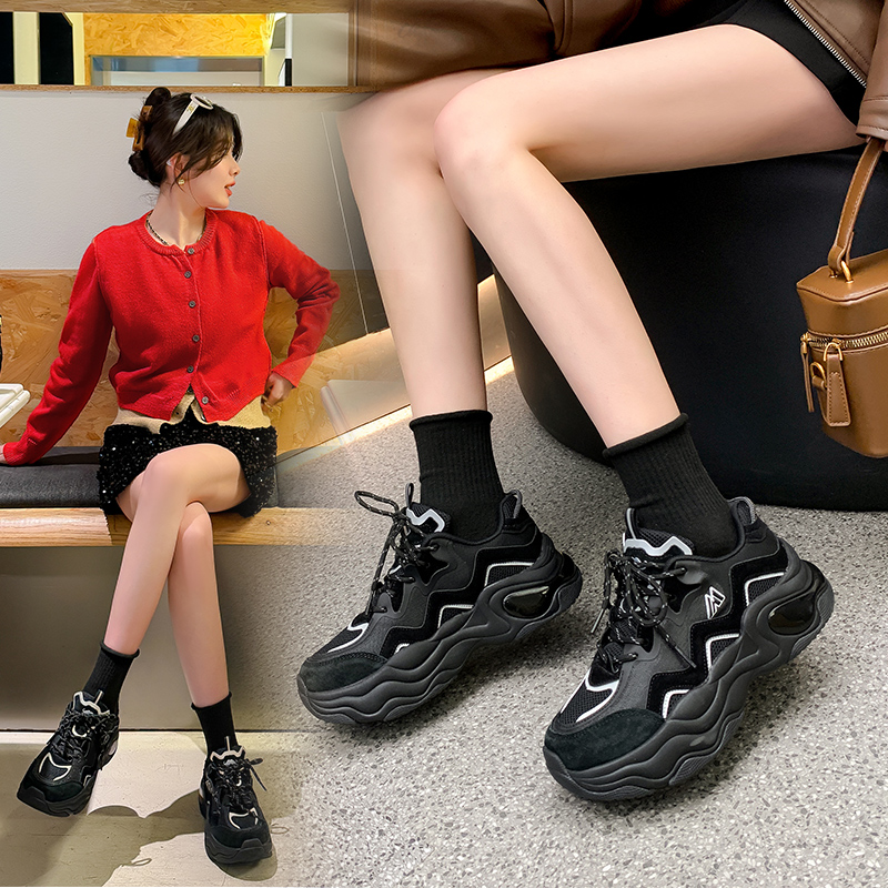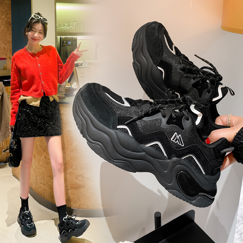 女2025秋季 子女休闲运动鞋 新款 增高鞋 百搭爆款 环球黑色厚底老爹鞋