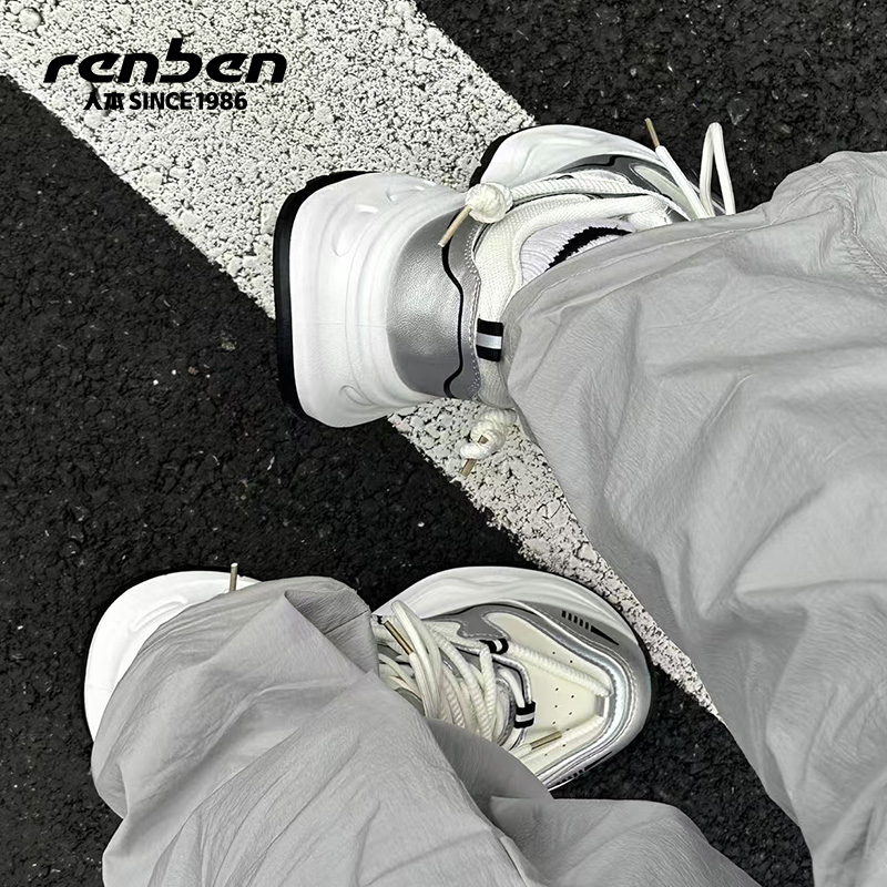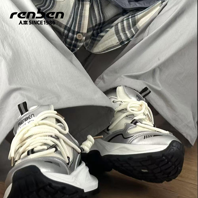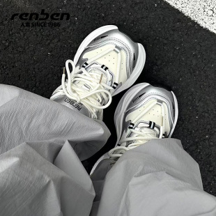 小众设计厚底炸街运动休闲跑步鞋 人本银灰色老爹鞋 女2025春秋新款