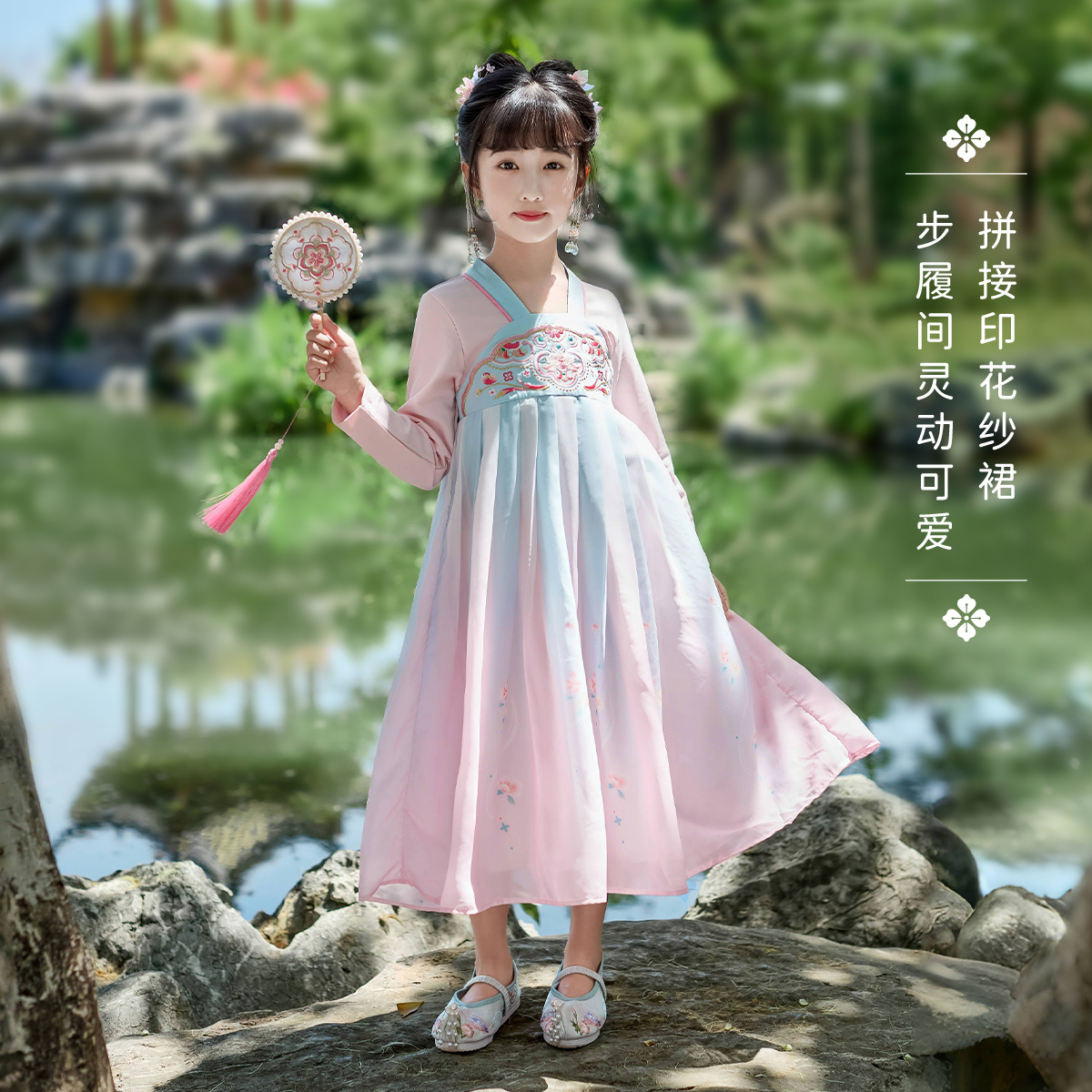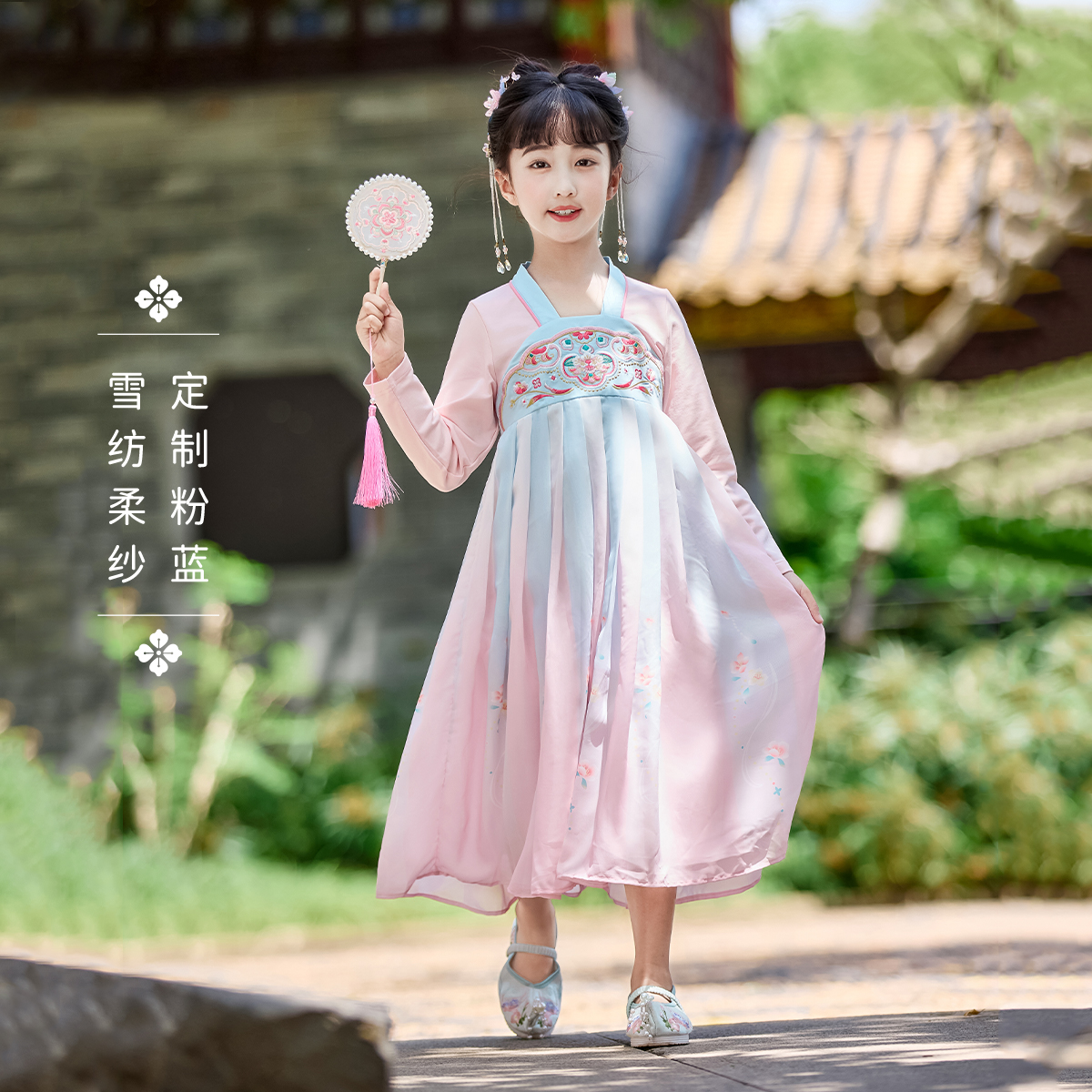 长袖 撞色襦裙甜美宝宝新中式 连衣裙儿童汉服 2025大童春季 女童唐装