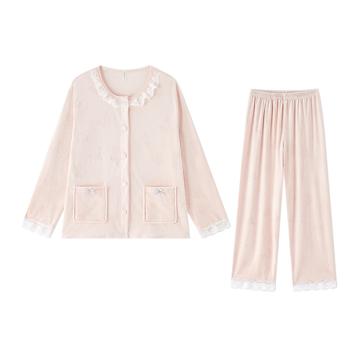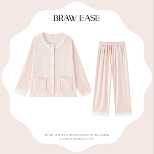 秋冬款 珊瑚绒薄绒牛奶绒长袖 法兰绒家居服套装 BE海岛绒睡衣女冬季