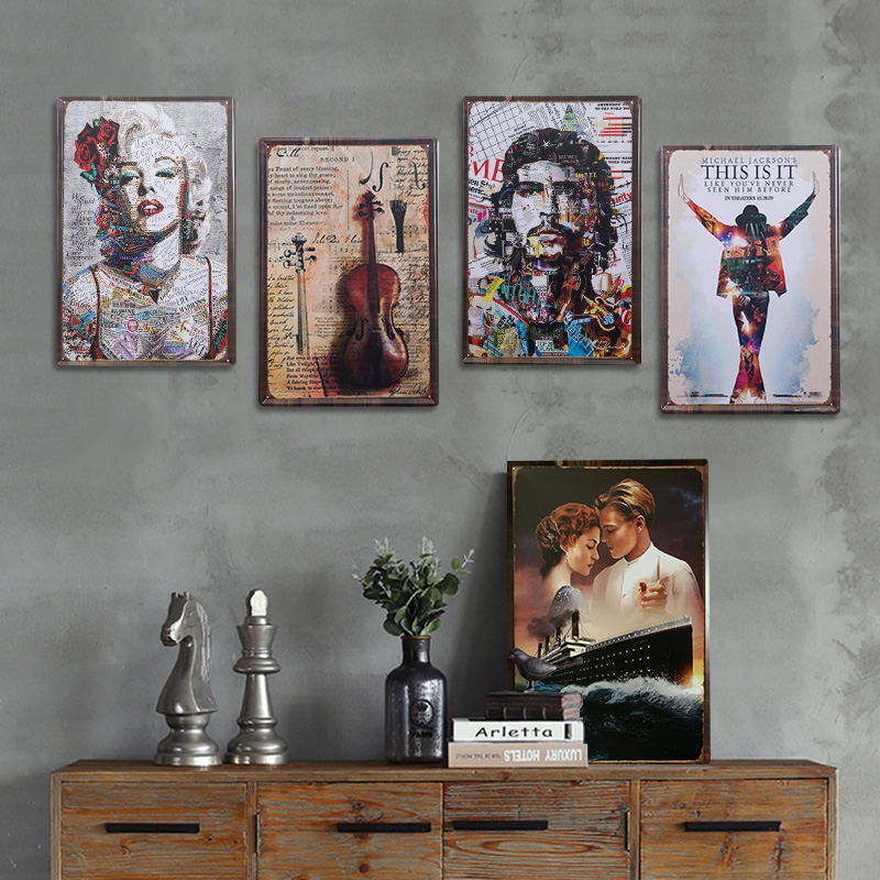 工业风墙面装 饰复古铁艺墙上壁挂创意酒吧餐厅店铺挂件大号铁皮画