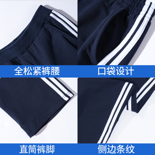 深蓝色儿童校服裤 子春秋中小学生一条两道三道杠男女童纯棉运动裤