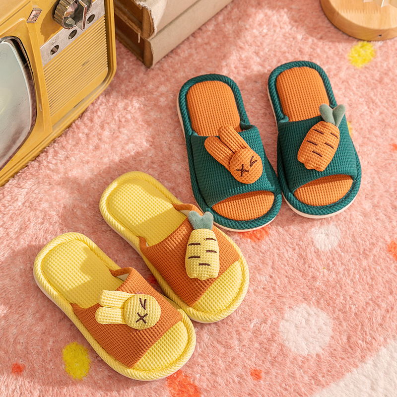 儿童拖鞋 地板防滑 亚麻室内幼儿园女童春秋小孩亲子宝宝男童家居鞋
