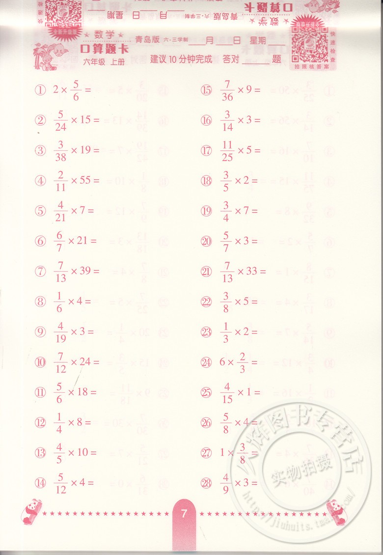6.3学制六6年级上册小学生10分钟口算题海淀全新升级版 青岛版 心算口算速算巧算小学生数学口算题卡六三制 数学口算题卡 新版