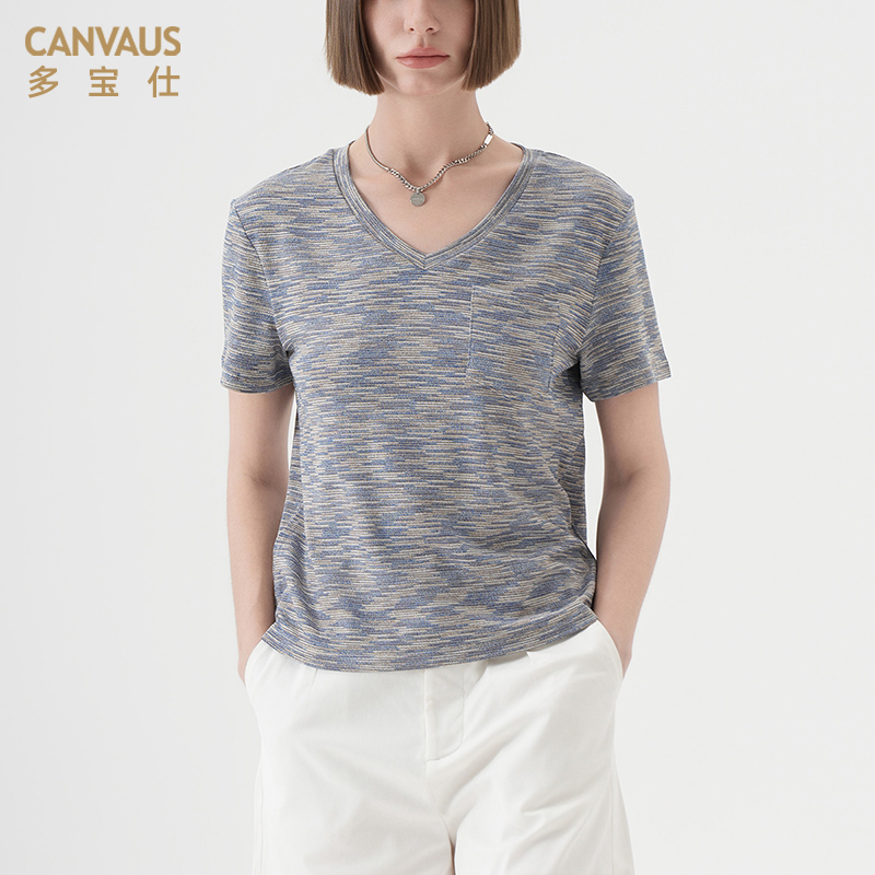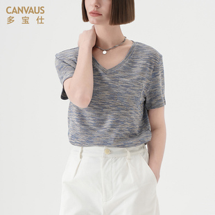 胖mm宽松遮肚V领短袖 慵懒风T恤女夏季 上衣撞色体恤 女装 多宝仕大码